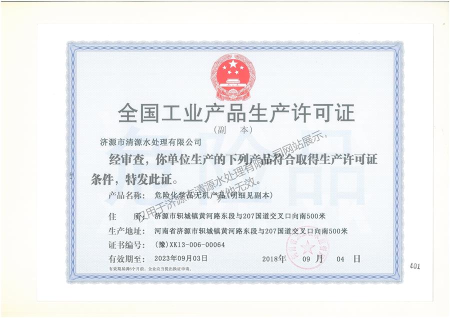 全国工业产品生产许可证(氯碱···